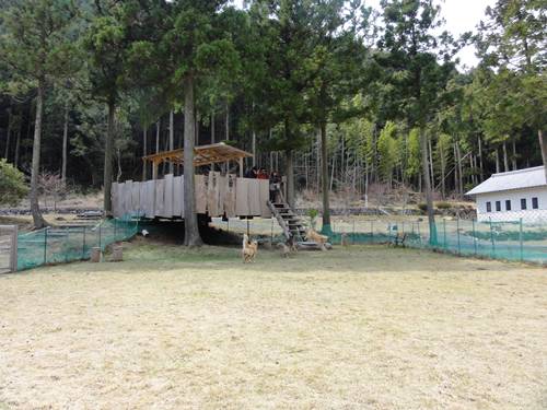 広いほうのドッグランには、トムソーヤ風の休むところがあります。