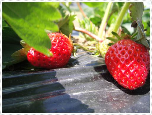 行きしに、イチゴ畑で、ふりこがたくさんイチゴを取ってたんやけど、