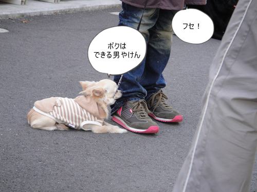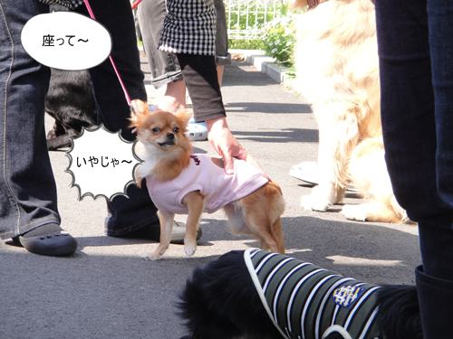↓このチワワくんは、いざ飼い主が「スワレ」を命令すると、とたんに反抗。