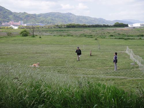 ワタシたちも、土手をあがったところから、こっそり応援。