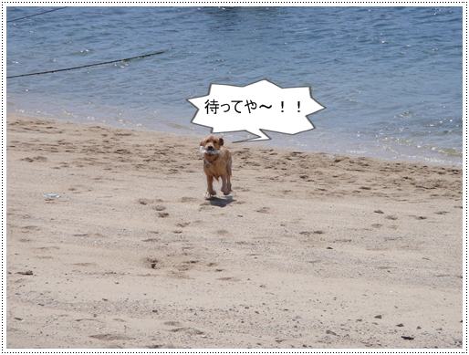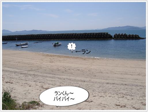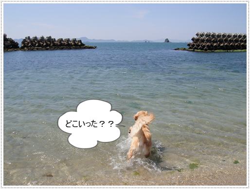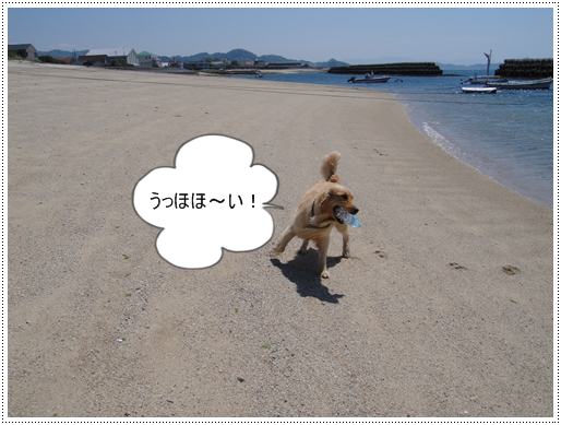 おなじみ、ペットボトルを海に投げ込むと、喜びいさんで取ってくるランくん。