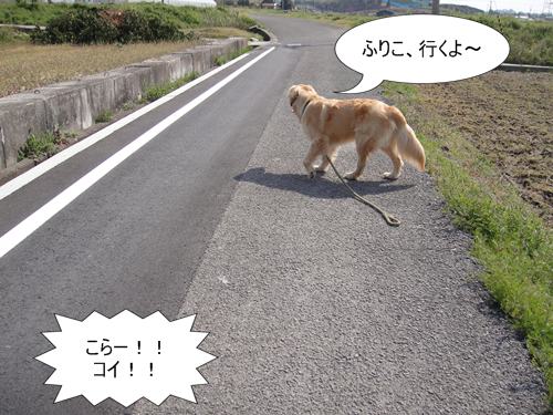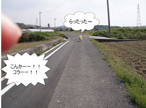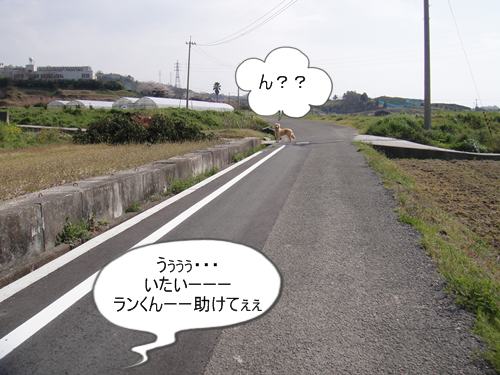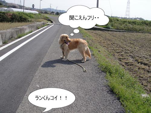 人も車もいない農道なので、ランくんをしばしフリーに。