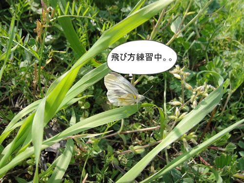 まだ飛び方が、ぎこちない、モンシロチョウさんに会いました。