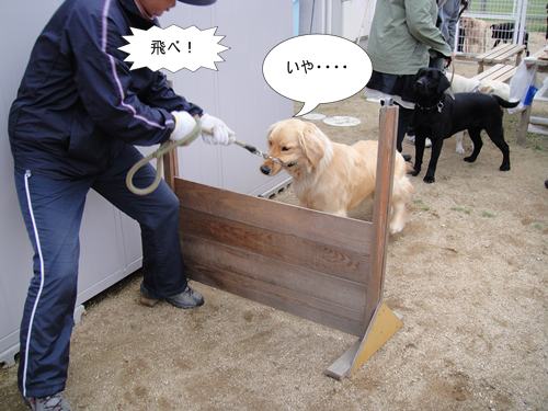 さて、レッスンのあとは、競技会に出るわんこ用にハードルを飛ぶ練習です。