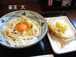 釜玉(大)に、半熟たまご天、かしわ天。