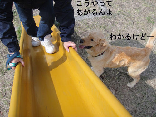 ↓すべり台ですべれなくても気分だけで満足したランくんに一票クリックお願いします★