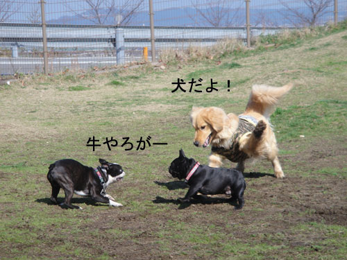 大型犬やら小型犬がみんな仲良く遊んでました。