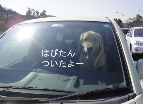 ランラン号に、ランとはぴちゃんをうしろに乗せ、助手席にはきなこ。