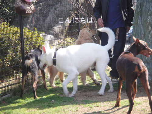 初めて会う、ホワイトシェパードくんやドーベルマンくん。
