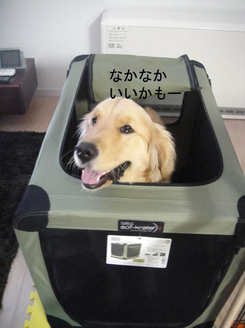 実家で時々、リキのクレートに入って、入りきらずに頭だけ出しているランくんなので