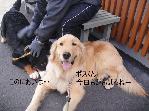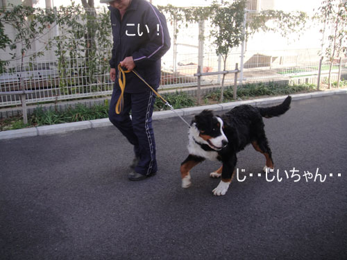 今回で3回目のボスくんは、おじいちゃんに甘えて甘えてきちんとしたフセをしないので