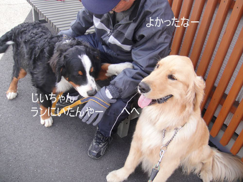 先に来ていたボスくんとおじいちゃんに挨拶するランくん。