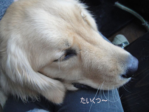 ワタシの膝の上に顔をのせて、おとなしくしてます。