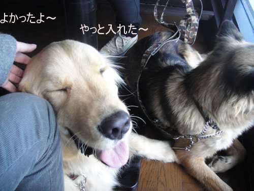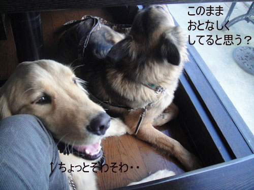 入ったときは、興奮気味でしたが、どうにかテーブルの下に落ち着いてくれましたぁ、、
