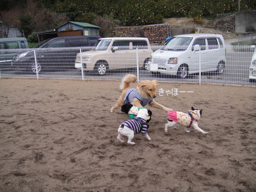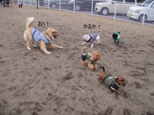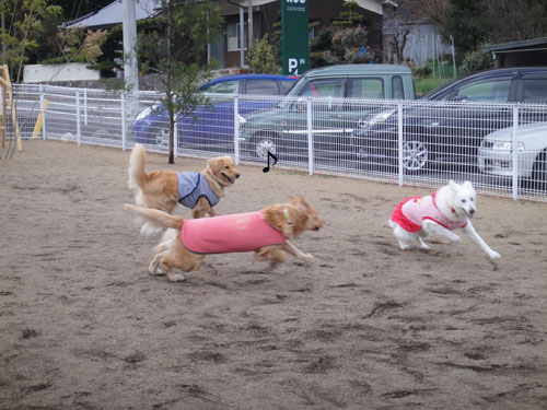 一足先にドッグランにて遊んでおりました。