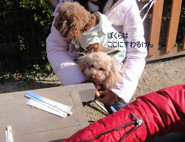 プードルちゃんたちはママのお膝の上。