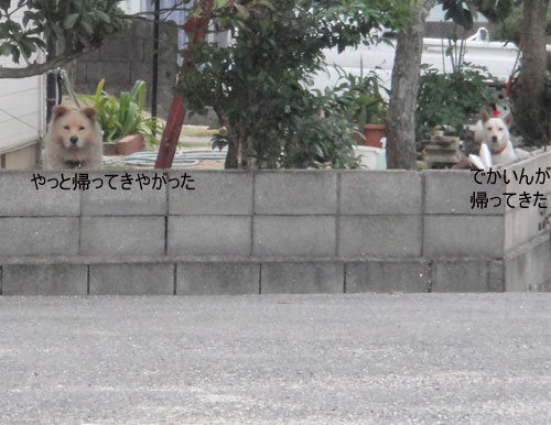 ↓「おいらもどっか連れいていけーー」とワタシの車の前から動かなくなるリキに
