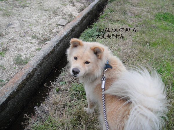 少しでも走ると厳しく怒られるので、じいじの顔を見ながらゆっくりの散歩。