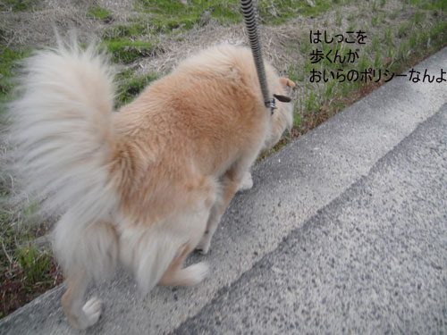 リキは道のはしっこをとおります。