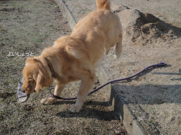 ちゃんとサンダルをくわえたまま猛ダッシュで戻ってきました。