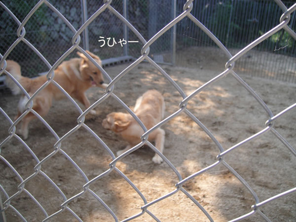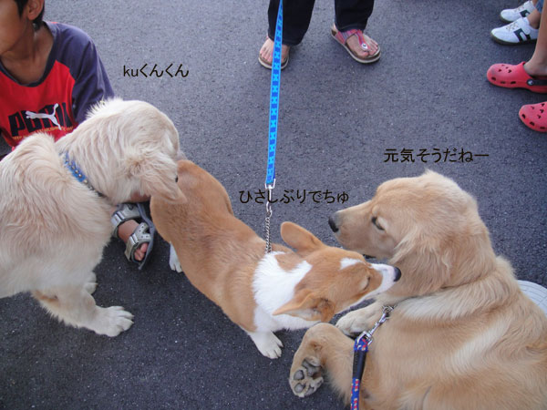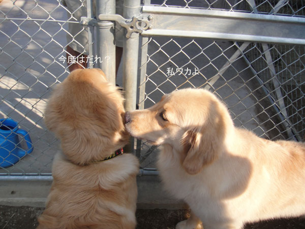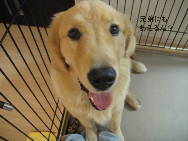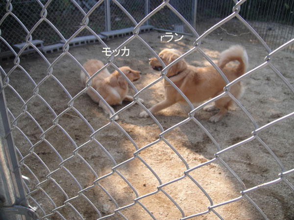 お互いクンクンしてましたが、ランは兄弟犬のいるところが気になるみたいで