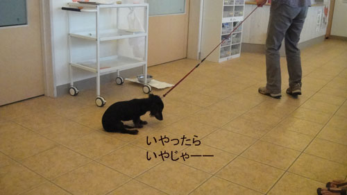 気分がのらないのか、絶対に歩こうとしないダックスくん。