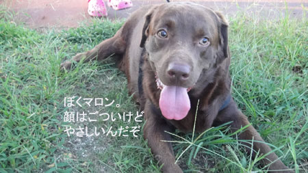 夕方、実家の前を散歩で通るラブラドールのマロンくん。