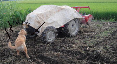 トラクターに吠えたり・・・。