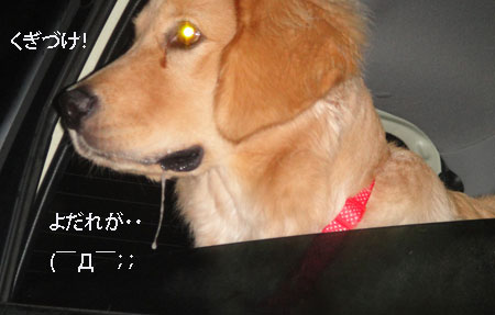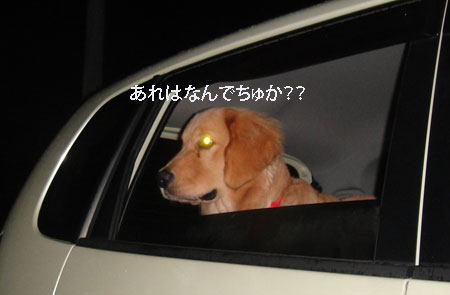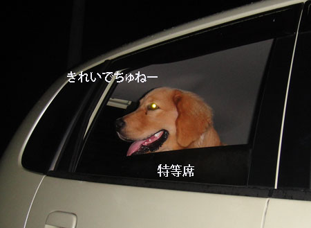 庭は雨で濡れてたので、ランくんは車に乗っての鑑賞です。