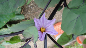 ちょこっと植えてるなすびときゅうりに可愛い花が咲いていました。