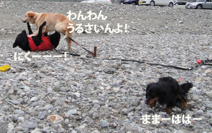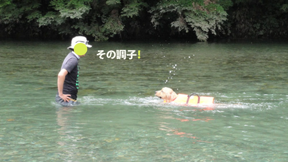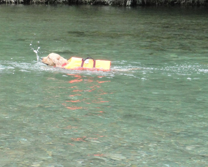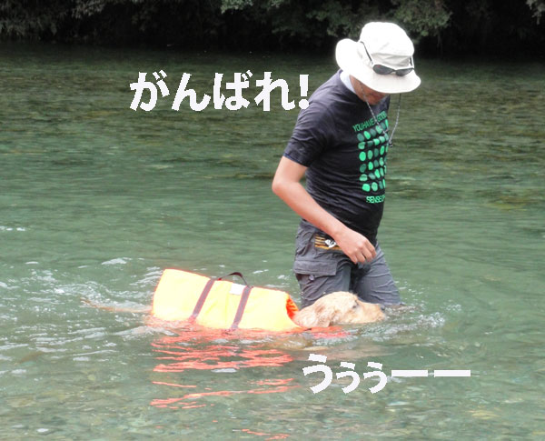 この日が初泳ぎの黒ラブ、どんちゃん用にと用意していたライフジャケットを