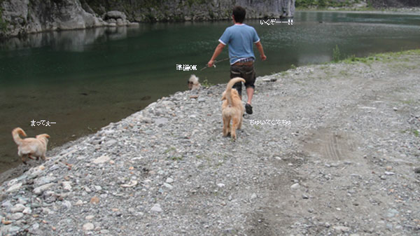 早速、くまちゃんのおとーしゃんが棒を投げる用意してます。
