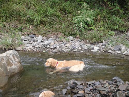 このあとは、ドッグランの下のほうにある川で泥をおとして、、