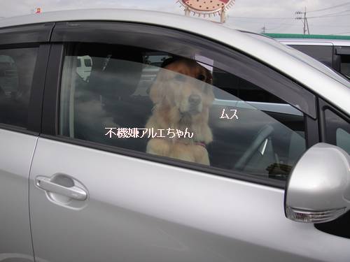 車の中でのお留守番に、すっごく怒ってる・・・!(後部座席には、同じ表情のハルくんが・・)