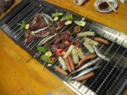 そして、地元の炭を管理人ご夫婦が用意してくれて、火もつけてくれ