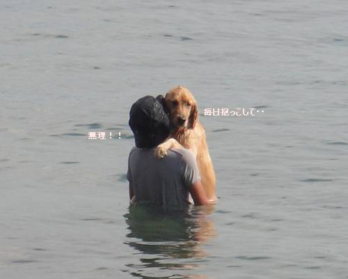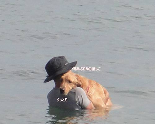 海の浮力を利用して、ランくん念願(いや、相方のか?)の抱っこが実現です!!