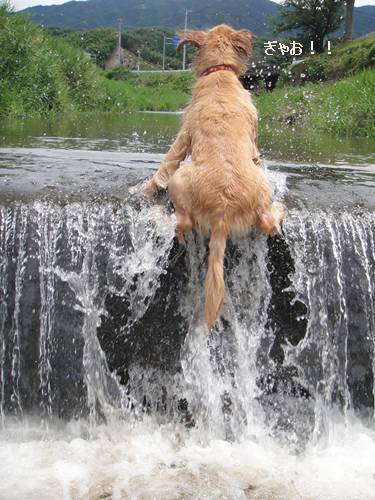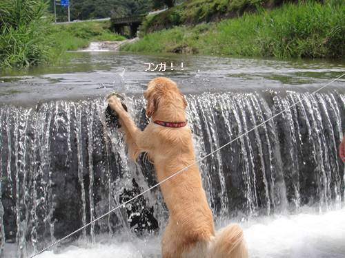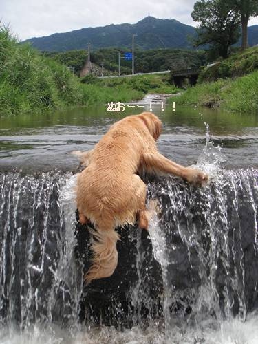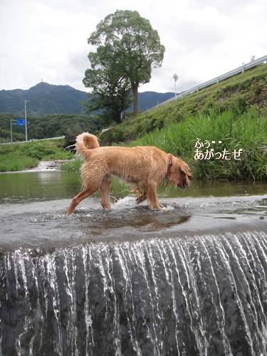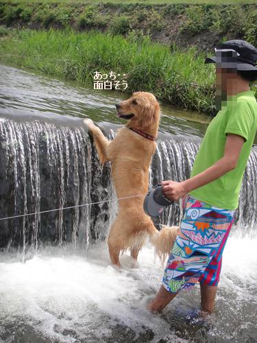 リキじぃさんと川遊びに行ったランくん。