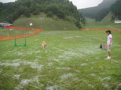 ランくんが、飛んでる下は、ゴルフのバンカーみたいにくぼみがあるところなんです。