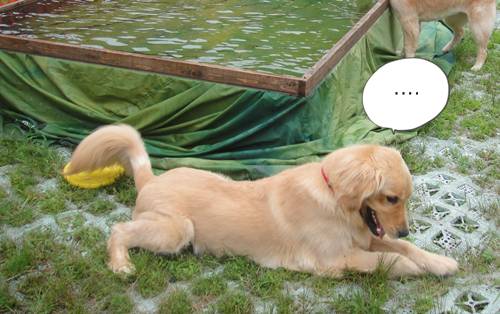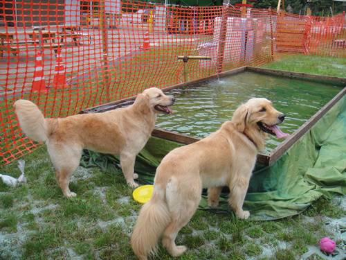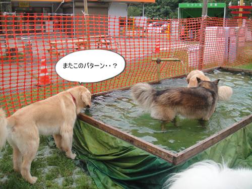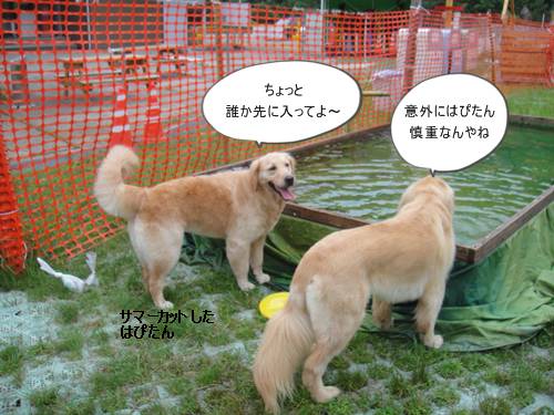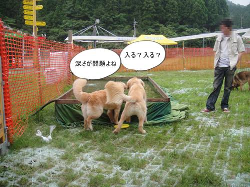 プールを目の前にして、俄然、盛り上がる、ゴル2頭。