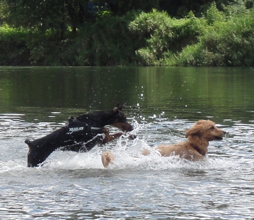 予告:ドーベルマンの女の子あずきちゃんから必死で逃げるランくん。(情けない・・・