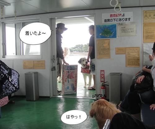島に上陸して、荷物を運ぶ間、はぴたんとランくんは、休憩~。