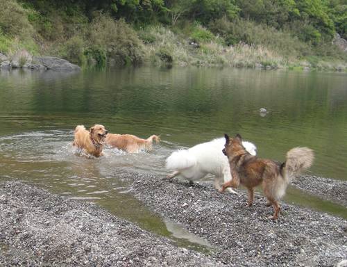 新しいお友達とも、いいかんじで距離をとりながら、みんな川遊びに夢中です。