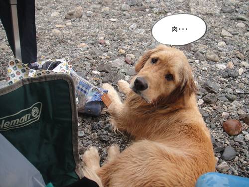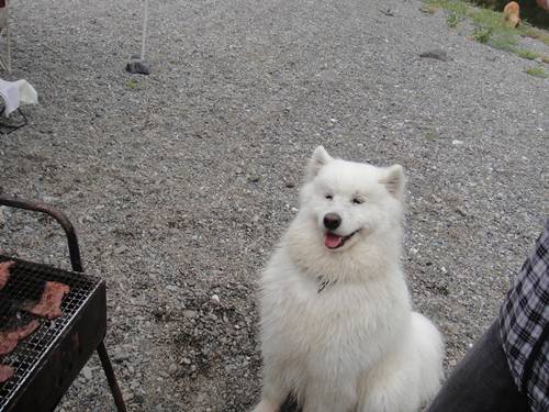 BBQのお肉を前にしても、きちんとオスワリして食い意地がはっていない