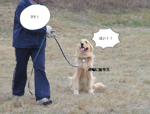 リードをはずして、25歩ほど歩いて、コイ。で、前に座らせて、脚側につける。