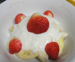 りんご・バナナ・イチゴ・ヨーグルトでケーキっぽく、作ってみました。