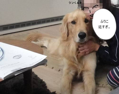 ランくん、すごい勢いで、腰が抜けたようにオスワリをして、目をおもいっきりつぶります。