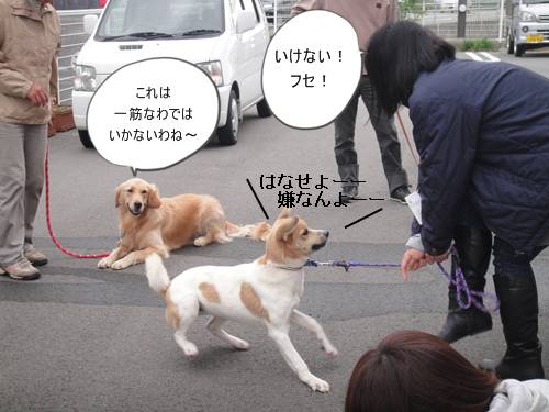みんなが見守る中、先生の指示のもと、飼い主さん、頑張ります。