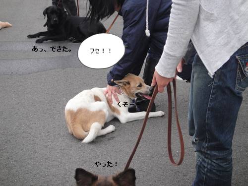 先生のやり方でフセを教えると、ほとんどのわんこは、すぐ覚えるのですが、、、