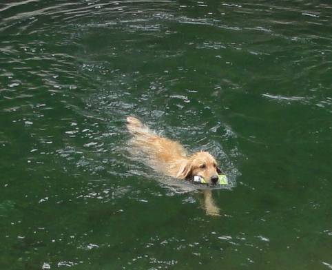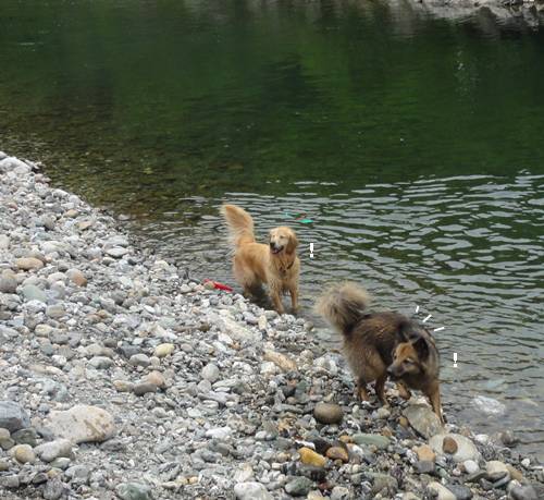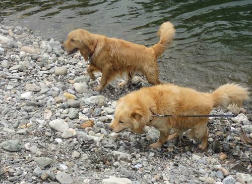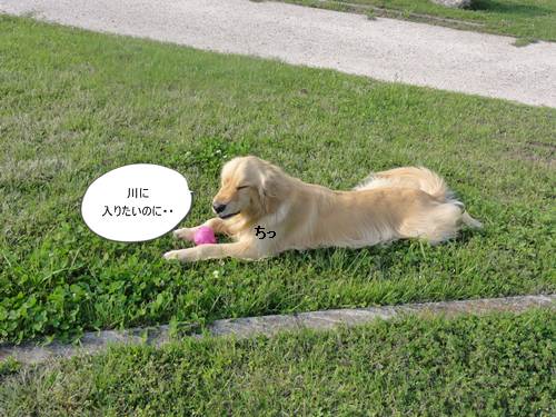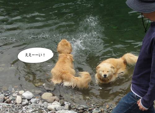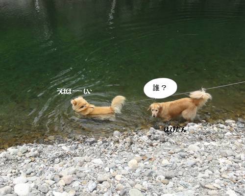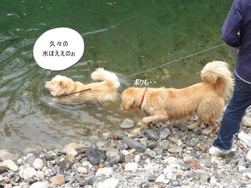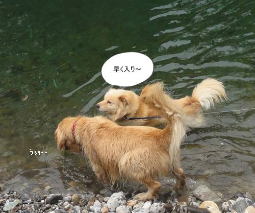 泳ぐのが大好きなクセに、川にはじめに入るときは、なかなか勇気が出ず、入れないみたい・・。(情けない・・