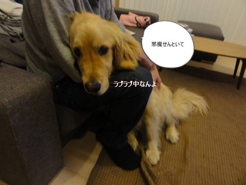 遊び疲れて、甘えるランくん。
